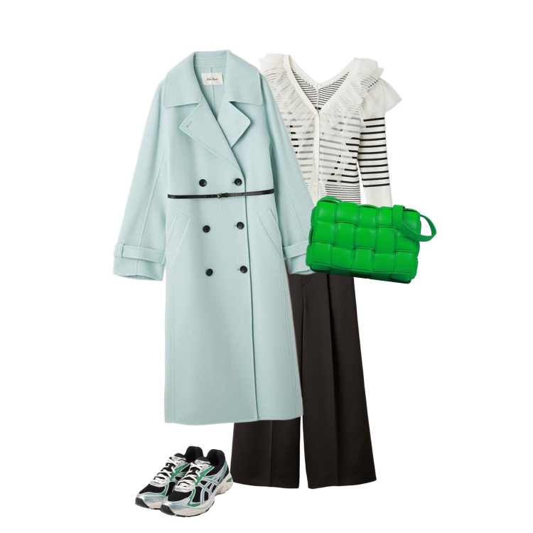 ブルー中心のコーデに、青みピンクのバッグを差し色に♡