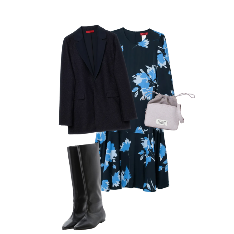 ブラウンのシフォンワンピで、ちょっとレトロに