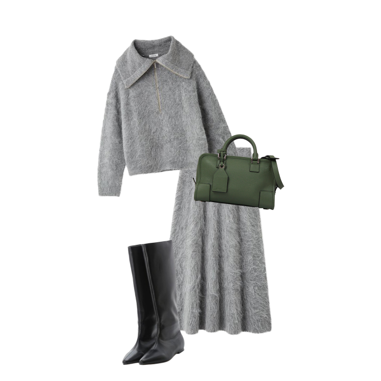 ツイードで品格UP ベージュのツイードジャケットが主役。