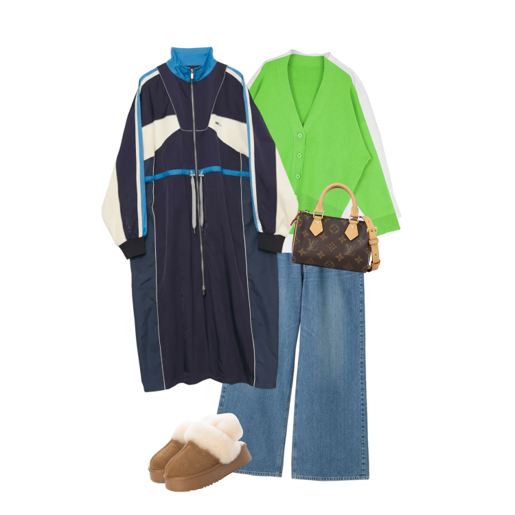 黒のダウンジャケットとチャコールのヘンリーネックで作るシックなベースに、マスタードイエローのワイドパンツで鮮やかな個性を注入。アディダスのサンバスニーカーでスポーティな軽快さを加え、ミニショルダーバッグでバランスを整える。モノトーンに一色加えるだけで、こなれ感が格段にアップする冬の正解コーデ。