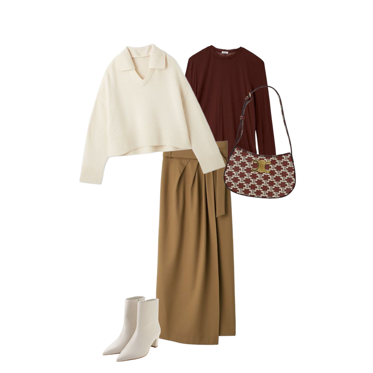シャイニーなロングスカートに、ちびバッグを合わせて今年らしく♡