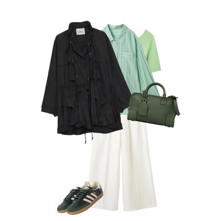 カラーシャツにマキシGGが映えるコーデ