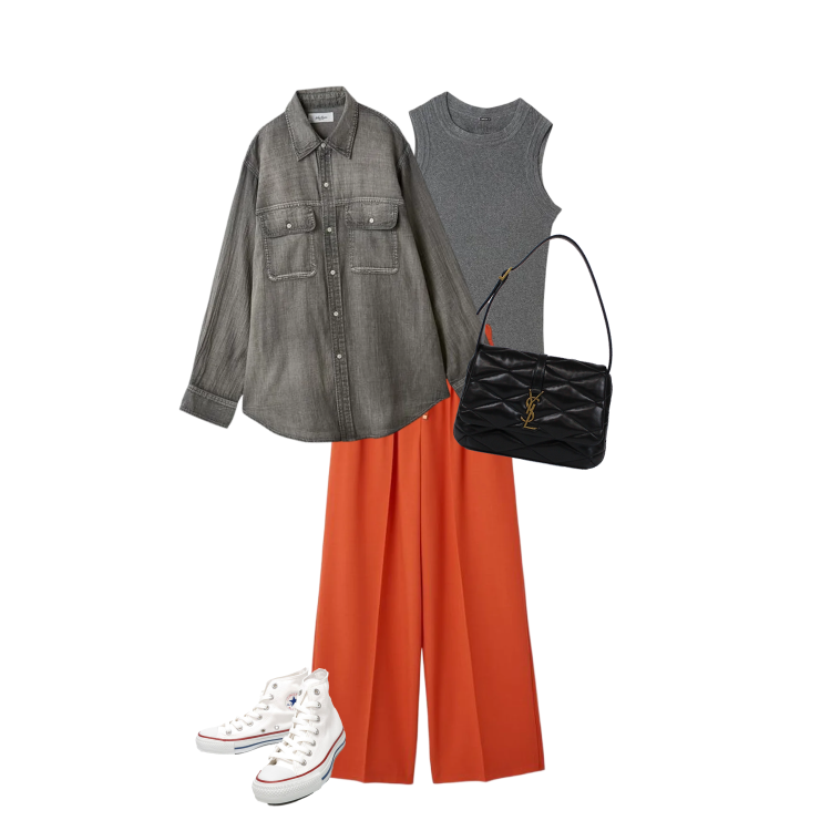 アイコニックなトライアングルのハンドルデザインと、ノーロゴ、ノージップのシンプルさがポイント。