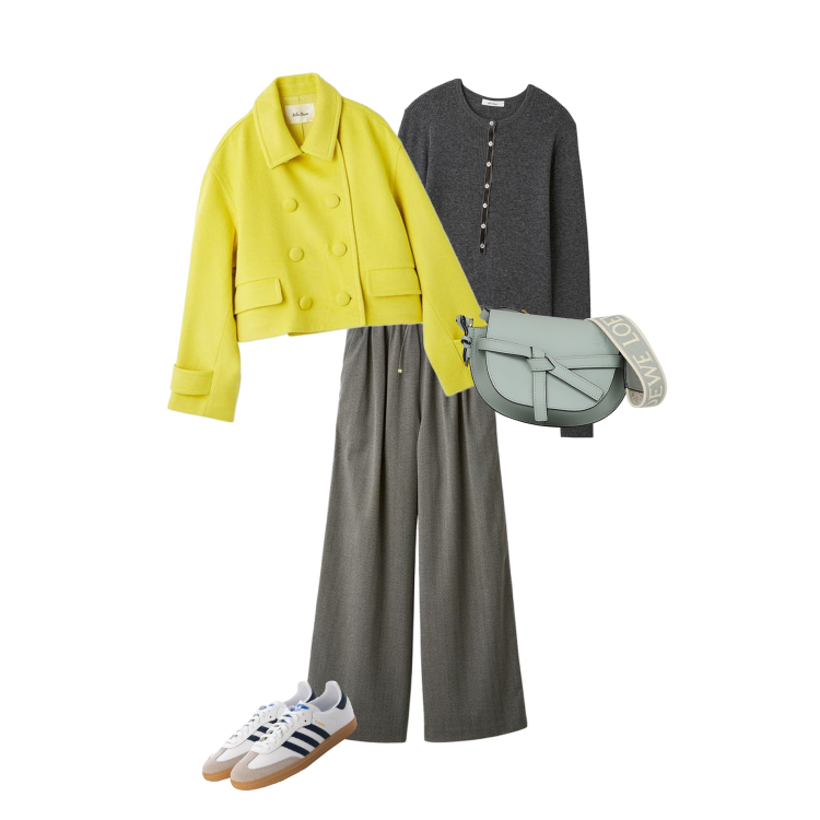 メンズライクなコーデはブラウスでカラーを取り入れて