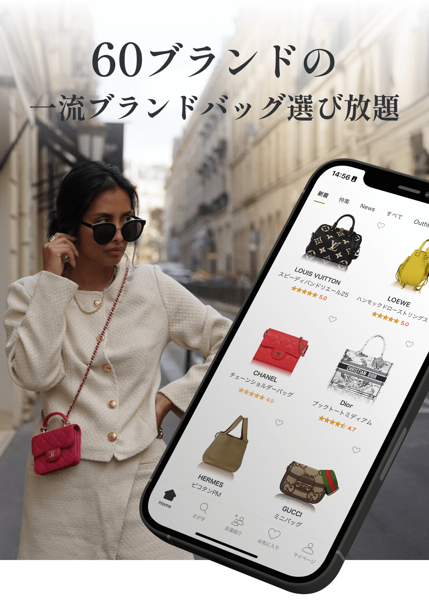 エルメス、ルイ・ヴィトン、シャネルなど一流ブランドが月額9,800円(税込10780)でご利用いただけます。しかも今なら3ヶ月半額! 60あるブランドからお好きなものをお選びください。ご返却期限なしでレンタル可能です。