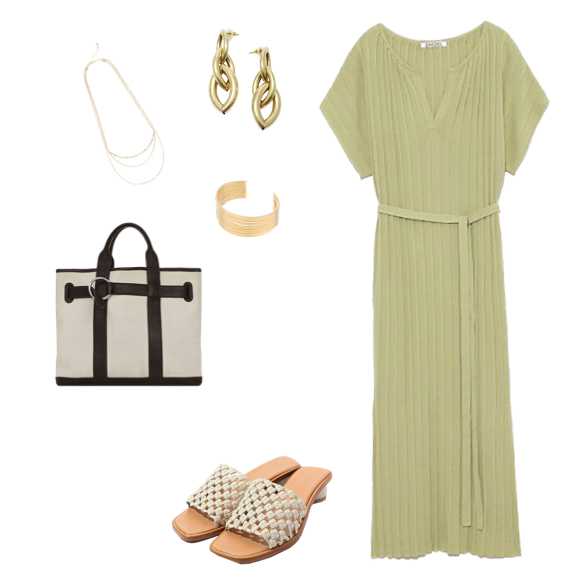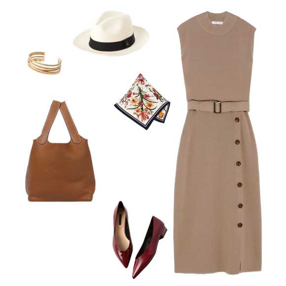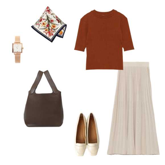 おしゃれ度の高いワントーンコーデ。エレガントに見せてくれるベージュをセレクト!やぼったく見えそう…そんな時は小物でアクセントを♪バッグやサンダルにブラウンを使えば全体の引き締め効果もあるのでバッチリ!ぜひ参考にしてみてくださいね♪