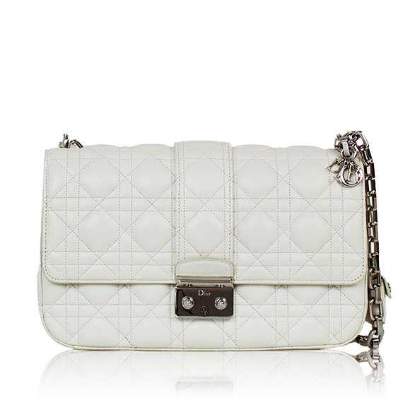 香水に始まり、アクセサリーやシューズなど、ディオールにとって特別な意味を持つアイテムにのみ名付けられてきた「ミス・ディオール」。かっちりとしたボックス型のフォルムと、サイドにつけられた細めのチェーンがフェミニンな印象を演出してくれます。