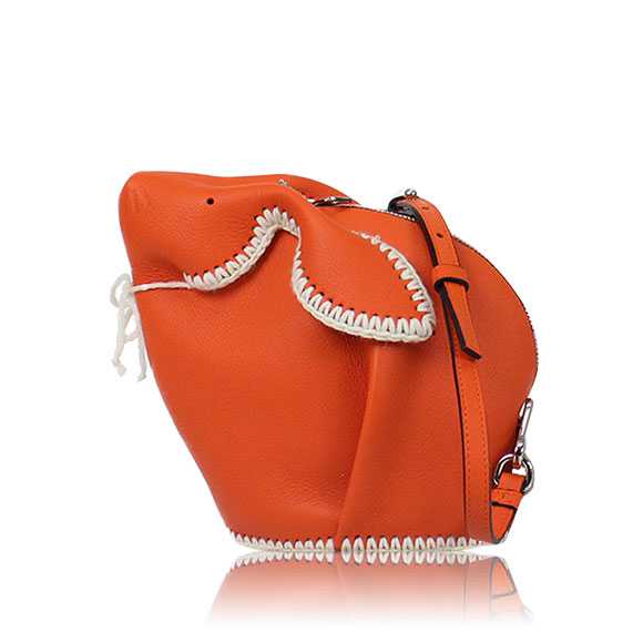 ロエベの人気の高いレザーアニマルシリーズは、スペイン・マドリード工房で偶然に生まれたようです。余ったレザーの切れ端に手を加えて作った、クマ形のコインパースから始まり、今もなお人気のシリーズです。シリーズの中でも、ジョナサン・アンダーソンのお気に入りは、エレファント。「コインパース」に遊び心とこれまでとは違った機能性を与えようというアイデアから、「エレファント バッグ」が誕生しました。その後もバニー・パンダと続々に可愛らしい仲間がデビューしています。丸みを帯びた耳の部分やロゴを配した底の部分は、職人によって丁寧にカラーリングされ、細部にまでこだわりぬいています。