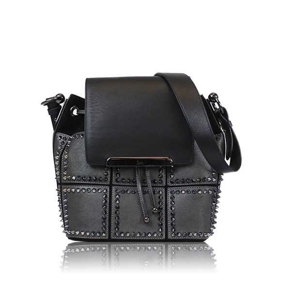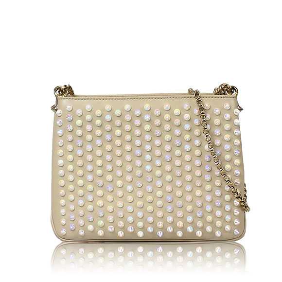 3つのバッグが連結したようなデザイン。それぞれにファスナーが付いており機能性抜群!オーロラに輝くスタッズがエレガント♡
