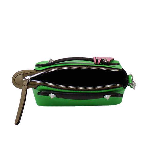 おすすめカラーはトレンドのグリーン。中の仕切りは無く、コンパクトでありながら上品な印象です。付属のストラップをつけてショルダーとして持つことも可能。