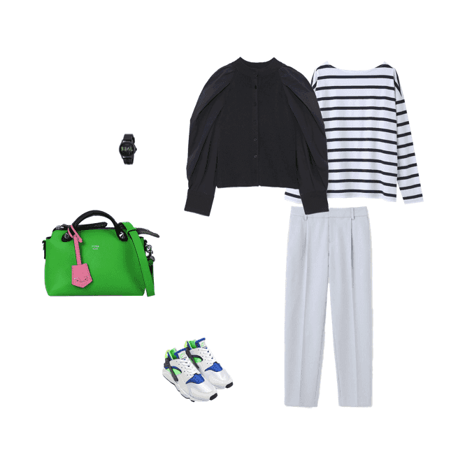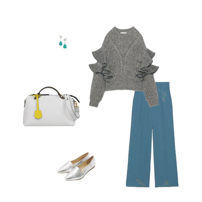 ハンドル部分がバイカラーのデザインを選んで。あえて、冬に寒色系のコーデもかわいい♡