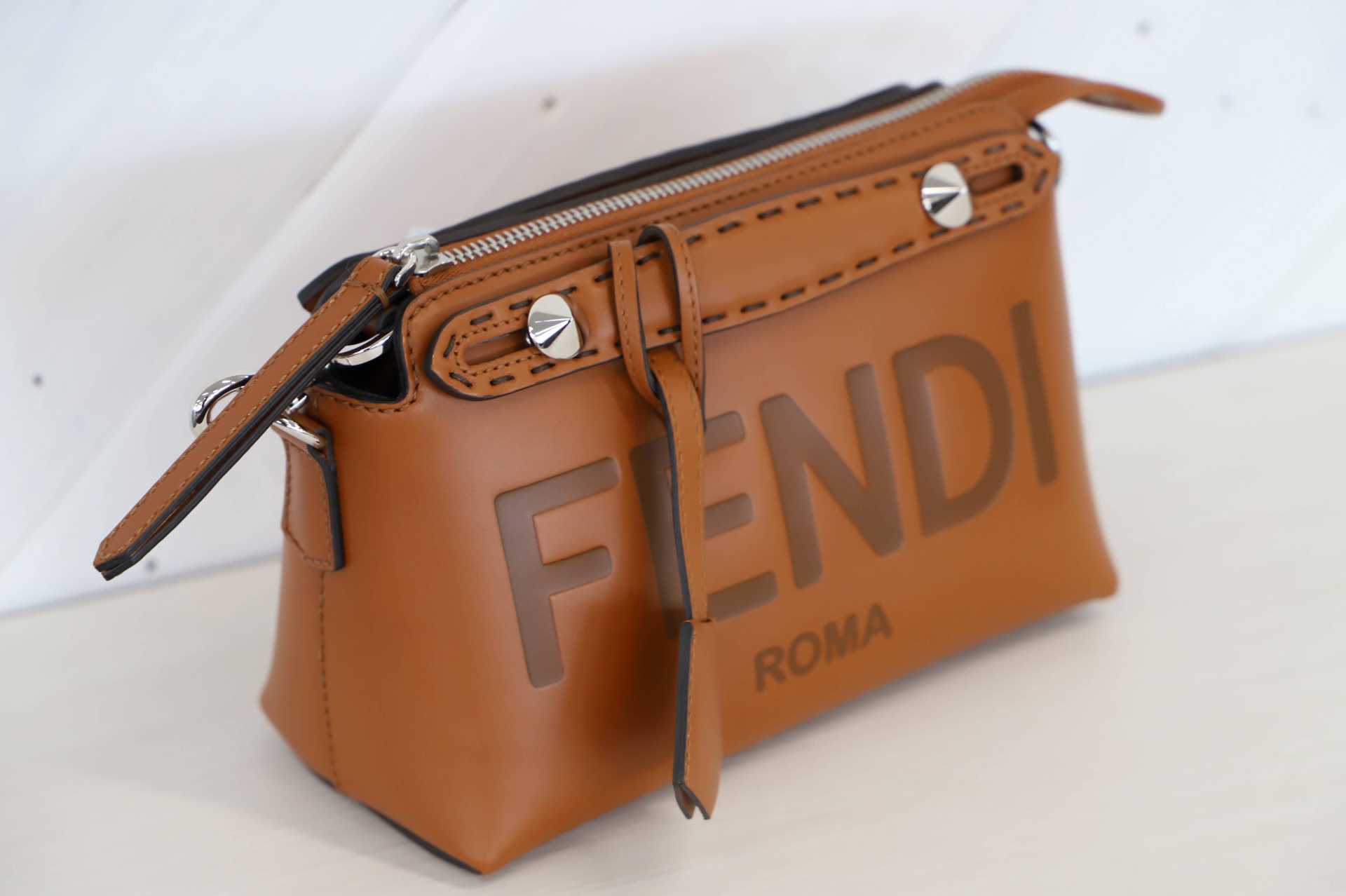 豊富なカラー展開の「バイザウェイ」(BY THE WAY)ですが、昨年よりブラウンのレザーのフロント部分に熱転写で「FENDI ROMA」の文字を飾った新しいデザインも発売されこちらも人気です。