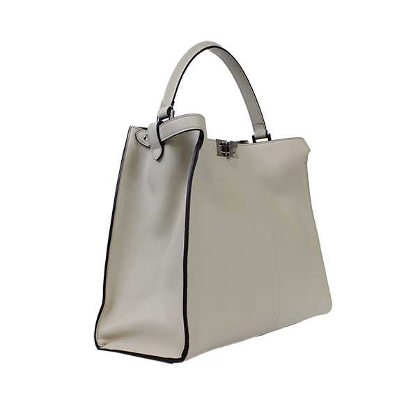 中央のバーフレームを取り払ったことにより軽量化を図った、大ぶりな上質トップハンドルトートタイプです。