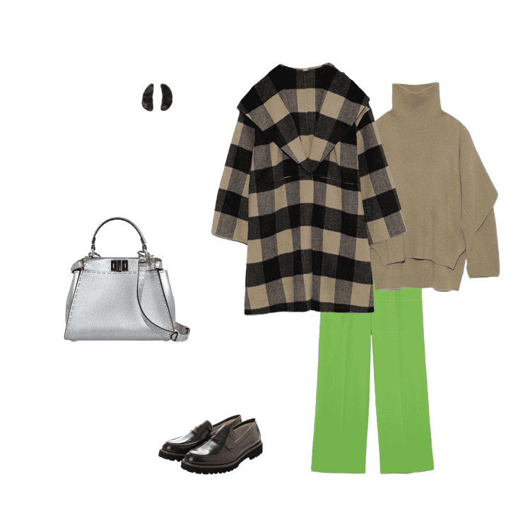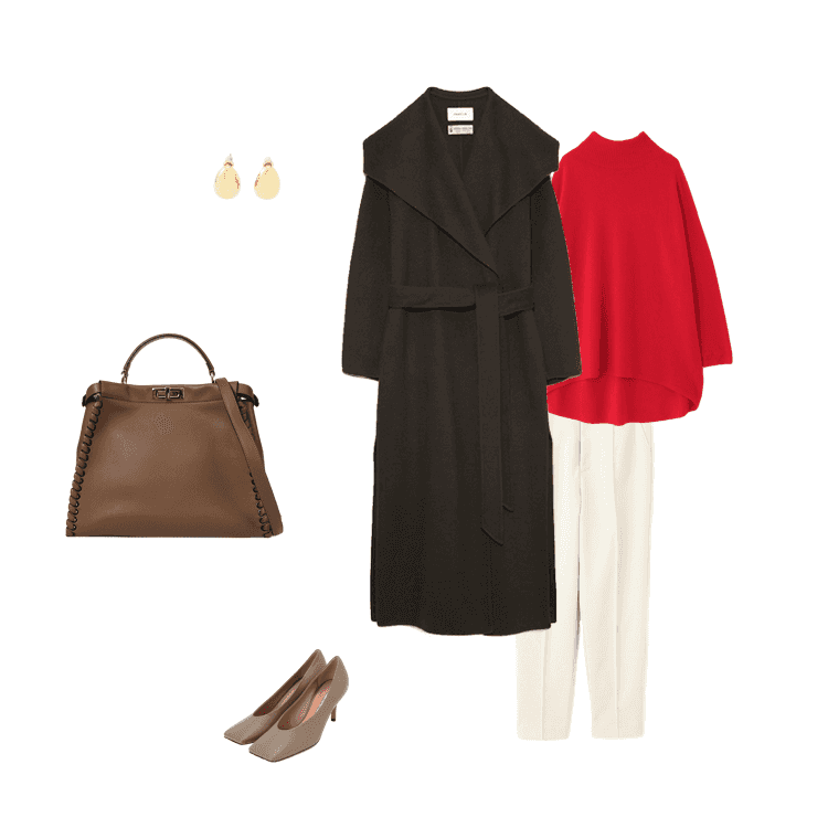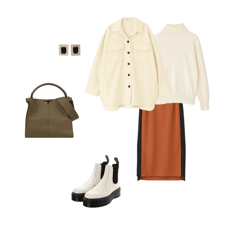 エレガントなキレイめコーディネートにはスムースレザーのミディアム。お仕事にも、お出かけにも!