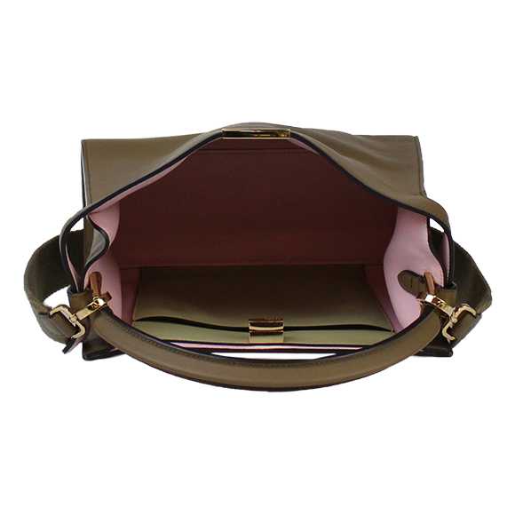 定番サイズミディアムは、レギュラーとも言われピーカブーの象徴的なサイズです。ハンドバッグとしても、ショルダーバッグとしても持つ事が可能で、実用的なサイズ感が人気の秘密のようです。パーテーション部分のデザインもポイントになっていてステキですね。