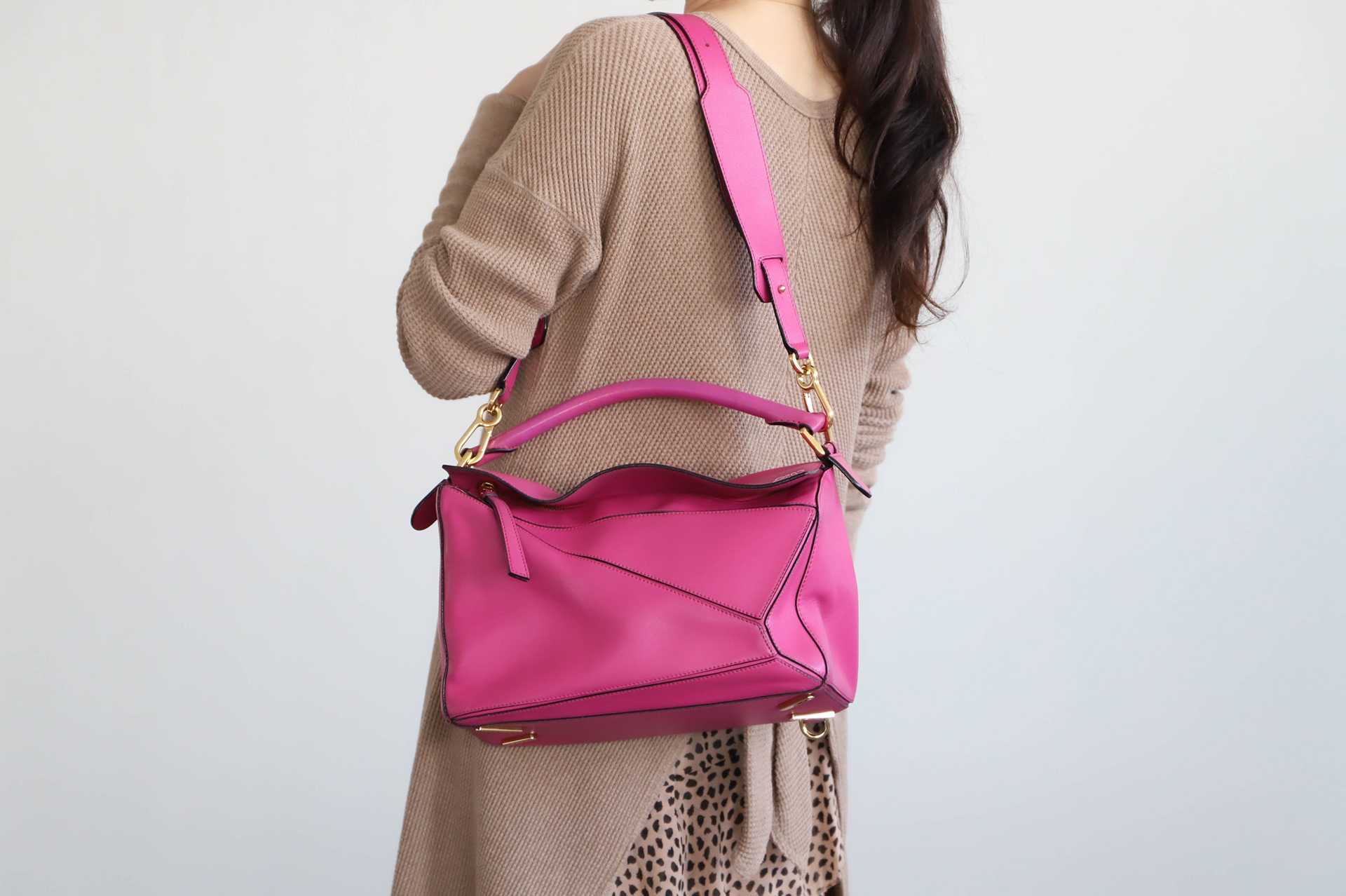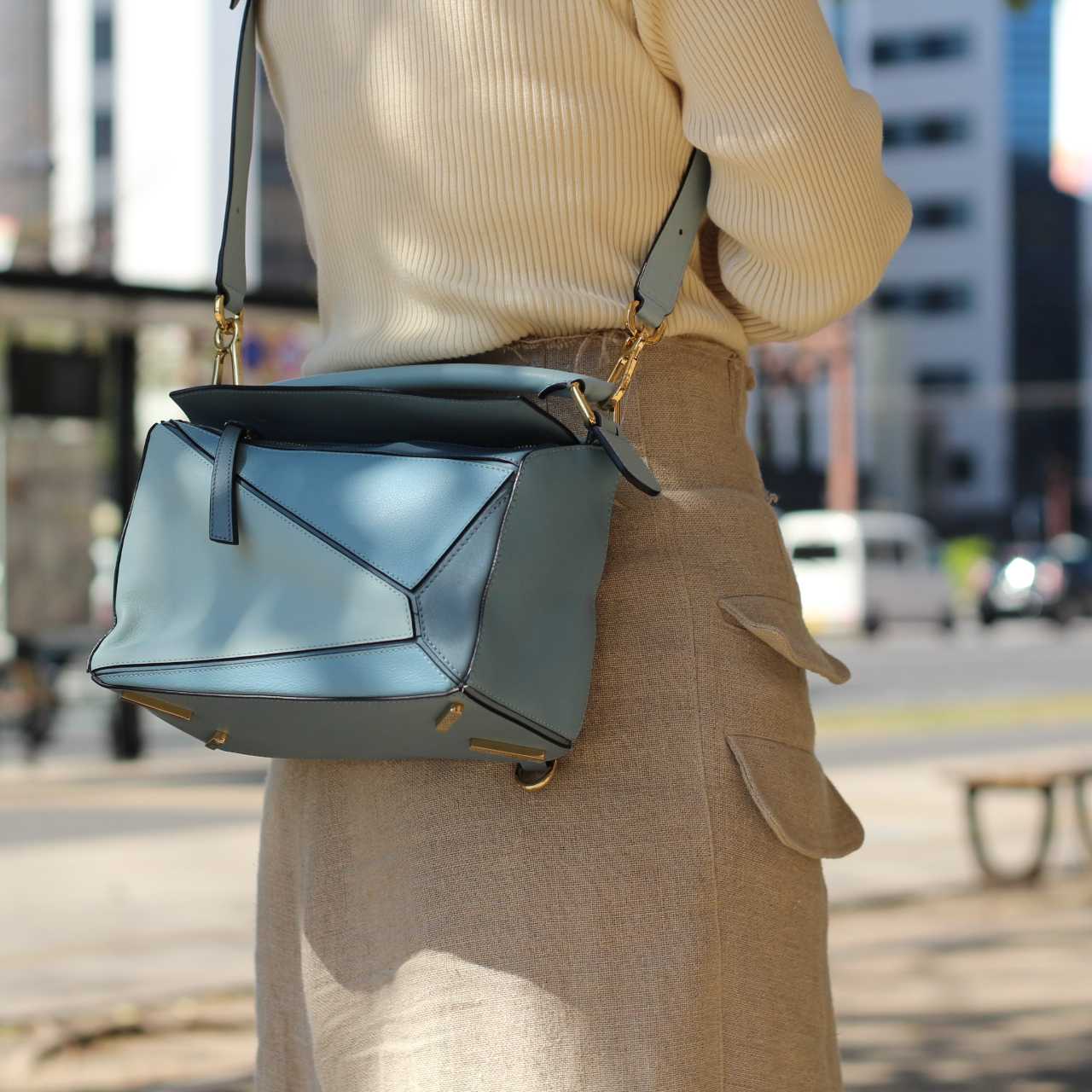 「パズル バッグ」は、現クリエイティブ・ディレクターのジョナサン・アンダーソンがロエベで初めてデザインした日本の折り紙からインスピレーションを受けて生まれたバッグなんです。レザーパーツをまるでパズルのように組み合わせた構築的フォルムが特徴のバッグで、バッグ自体も折リ紙のようにフラットにも折りたためます。また5Wayで使える多様性の高さから、使ってこそ真価を発揮できるバックとして多くの人から愛されているバッグです。