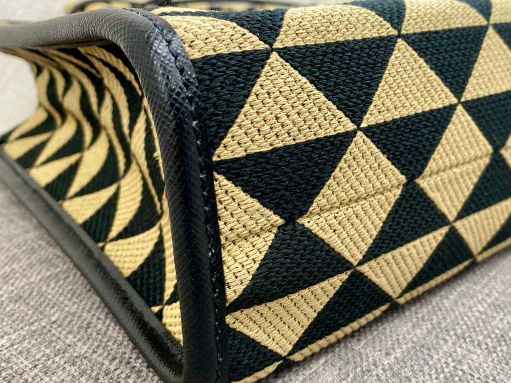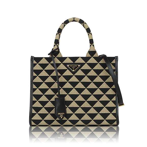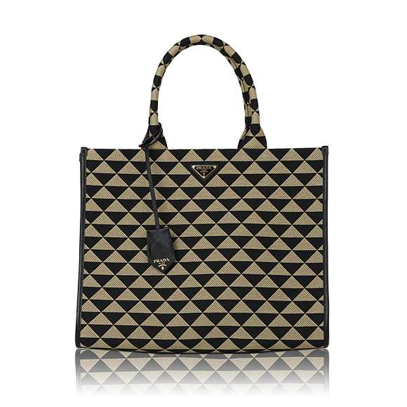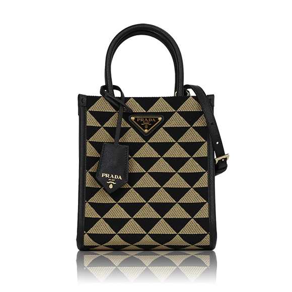 プラダの豊かな歴史と卓越したクラフツマンシップが息づくこのコレクションは、ブランドの象徴であるトライアングルロゴを、ラグジュアリーなジャカード織りでモダンに再解釈したまさに傑作。幾何学的でありながら多面的なデザインは、一目見た瞬間に「プラダ」とわかる存在感を放ち、持つ人の個性を際立たせます。