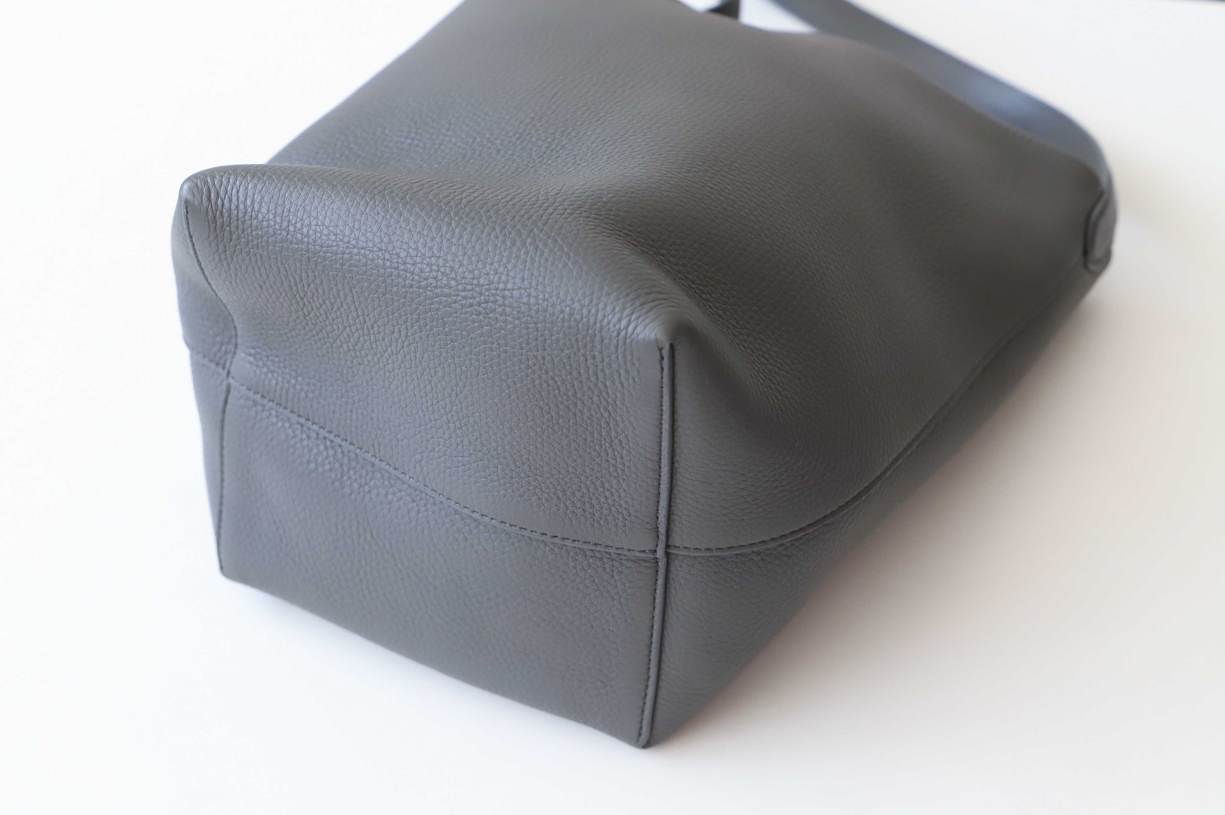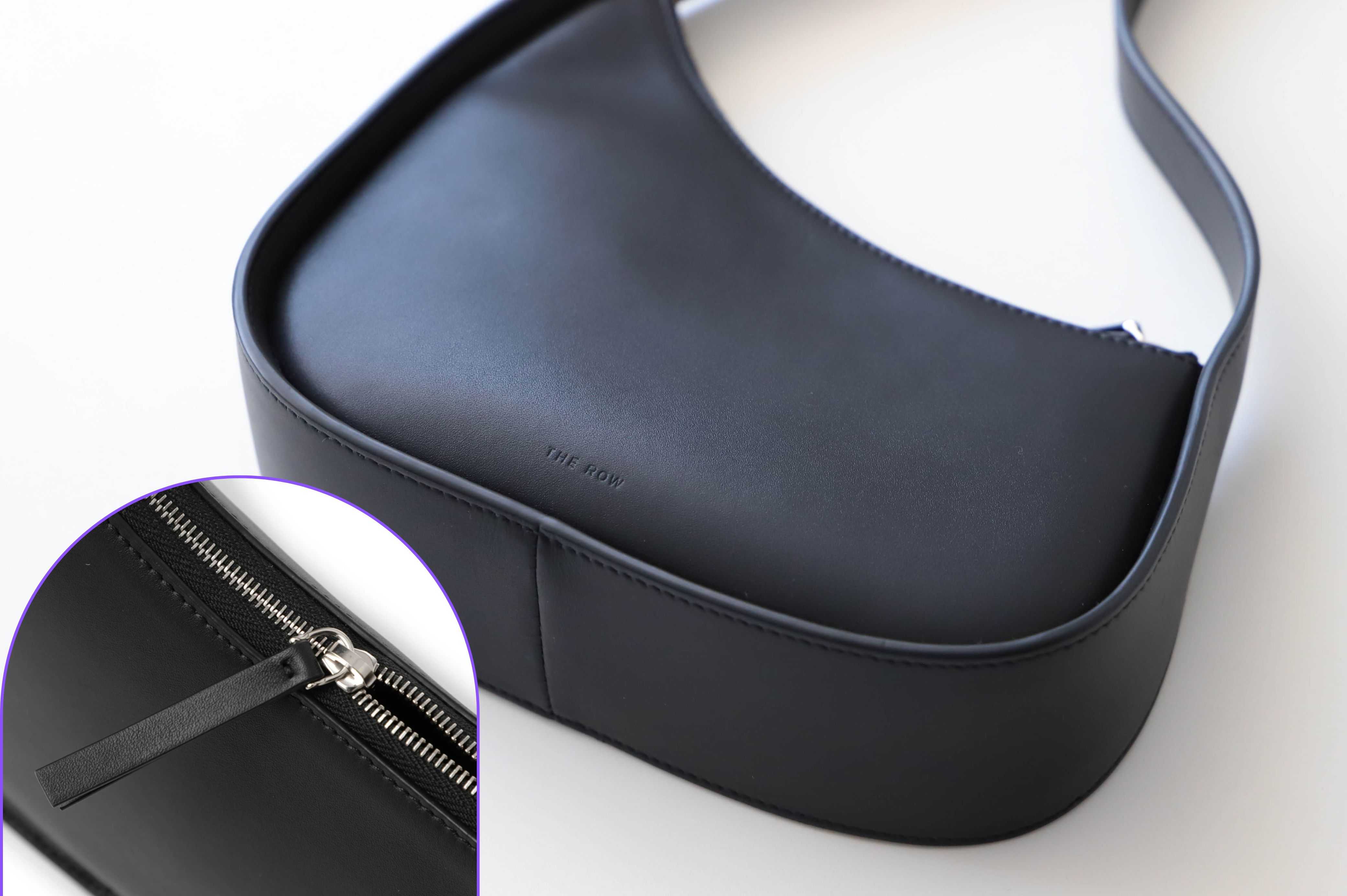 なお、THE ROWのバッグは製造時期によってロゴ仕様が異なり、旧モデルでは箔押し、新しいモデルでは型押しが採用されています。