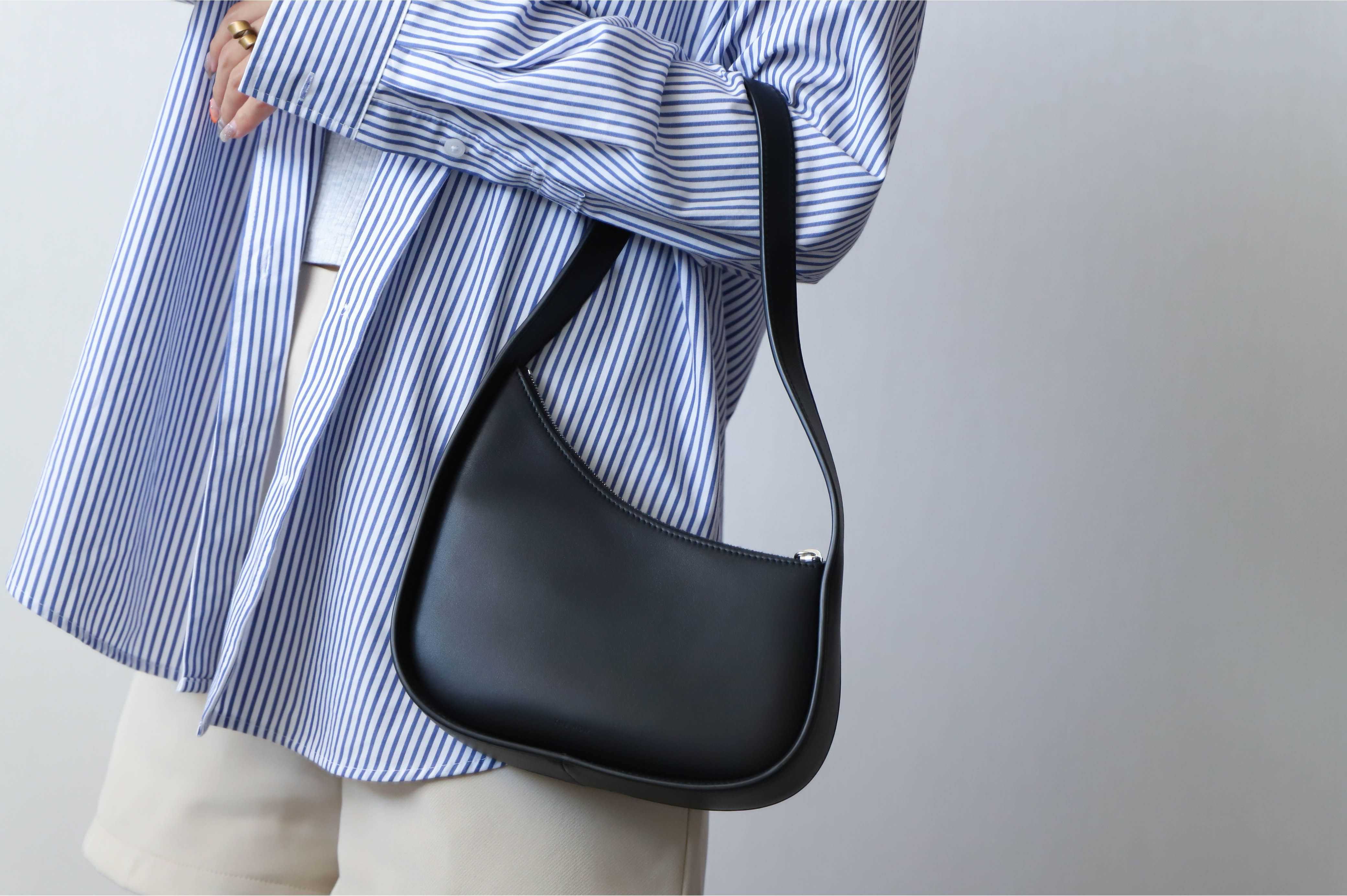 半月型のシルエットは身体のラインに自然になじみ、肩掛けしたときもストレスフリーです。 近所でのランチや買い物、友人とのカフェ時間など、「少しだけおしゃれしたい」日に、気負わず持てる上質さが魅力です。
